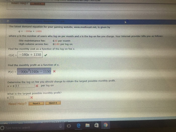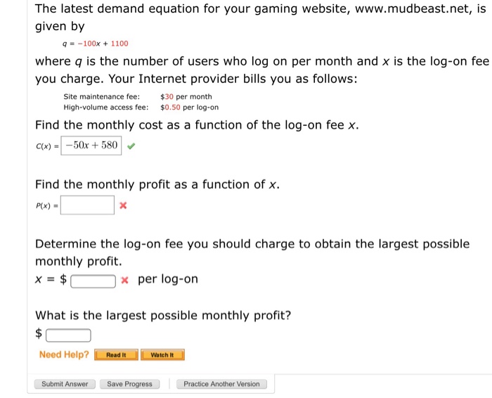 Here Ill explain how to deduce these from a demand equation. 20 text per month. Where q is the number of users who log on per month and x is the log-on fee you charge.